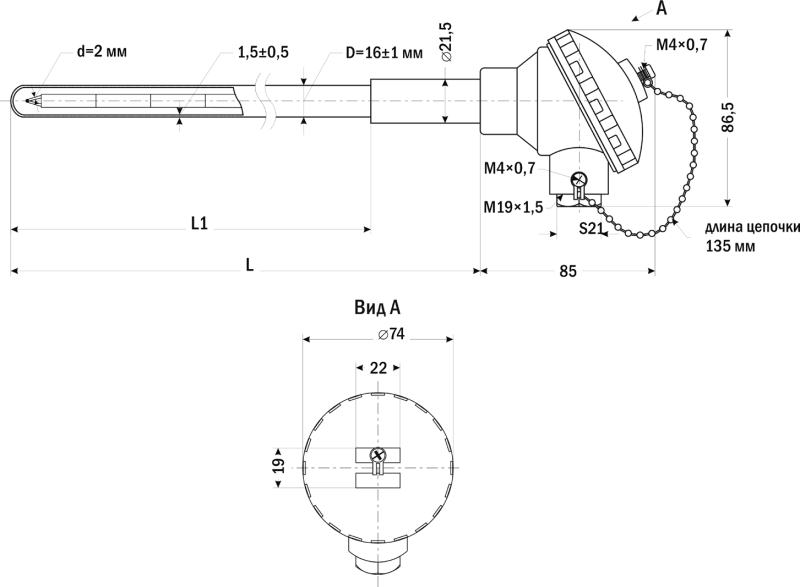 | Диаметр термоэлектрода (d) | 2 мм |