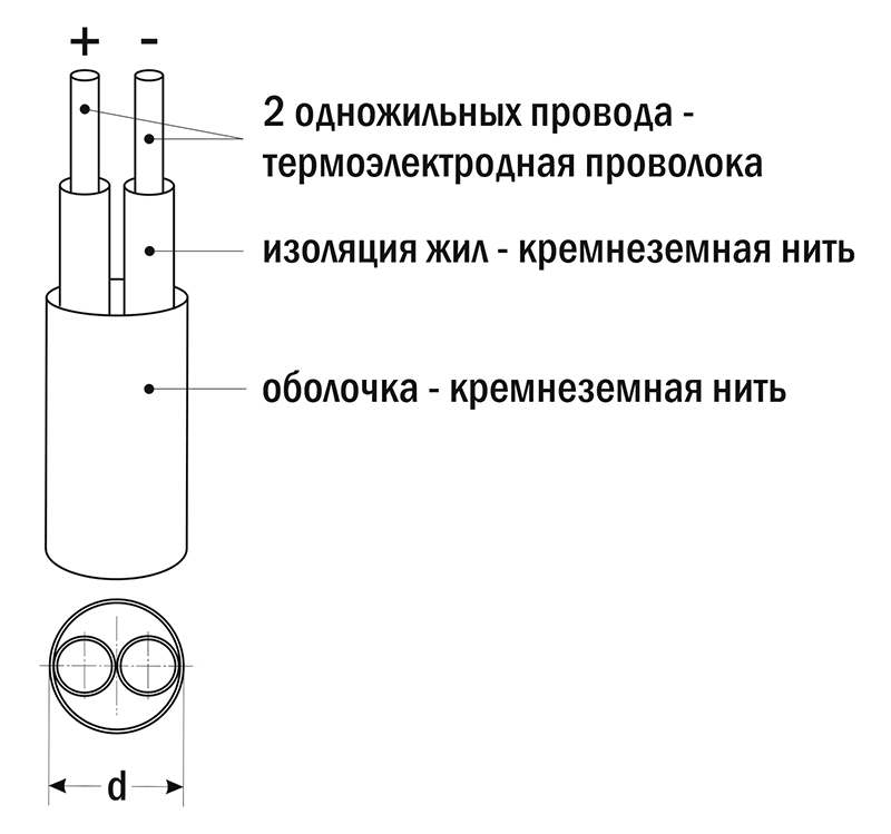 Компенсационный (термопарный) провод предназначен для соединения термопары с измерительным прибором и для изготовления термопар. Для подключения провода к портативными измерительными приборами используются термопарные разъемы, например, ТВк