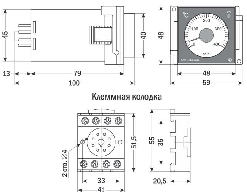 Терморегулятор ARCOM-A44 предназначен для контроля температуры и управления различными технологическими процессами, требующими поддержания постоянной температуры в диапазоне от 0 до +400°С, или для сигнализации о превышении температуры в этих пределах. Особенности: