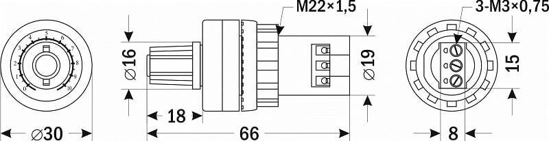 Потенциометры – это переменные резисторы, применяемые для регулировки различных технологических параметров. Одно из основных применений – удаленное управление скоростью вращения электродвигателя через аналоговый вход преобразователя частоты. Потенциометры могут также применяться для регулирования температурного режима, изменения значений напряжения, установки таймера реле времени, регулировки выходного напряжения ТТР.