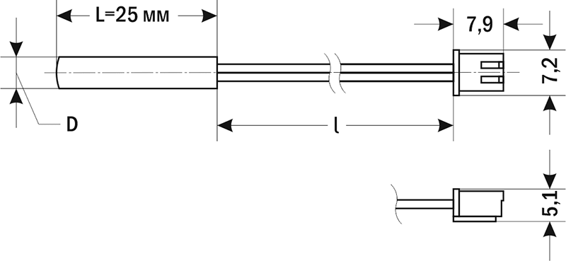 | Длина кабельного вывода (l) | 500 мм, 1000 мм, 2000 мм – стандарт