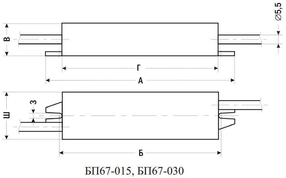 | Длина входных и выходных проводов | 130 мм (БП67-015, БП67-030)