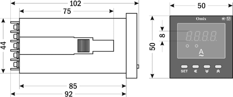 Амперметр однофазный щитовой Omix A1-1-K-N2 предназначен для измерения и индикации силы тока в однофазных сетях переменного тока, а также для сигнализации о выходе измеренных значений за установленные пределы