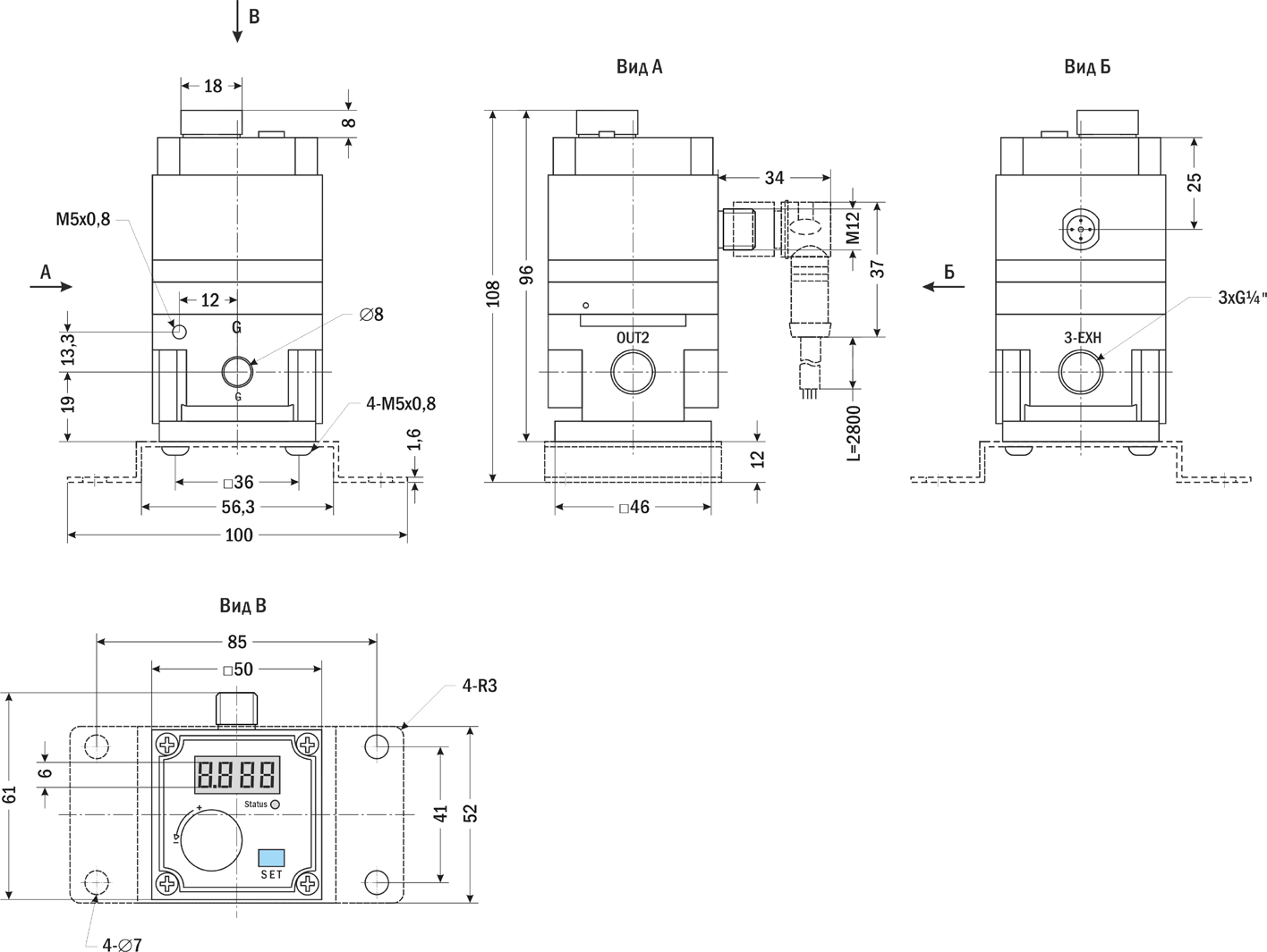 Силовая пневмомеханическая часть регулятора имеет три пронумерованных на корпусе отверстия (порта): 1 – подача сжатого воздуха, 2 – канал выхода воздуха в полость с регулируемым давлением, 3 – канал сброса избытка воздуха из регулируемой полости в атмосферу.