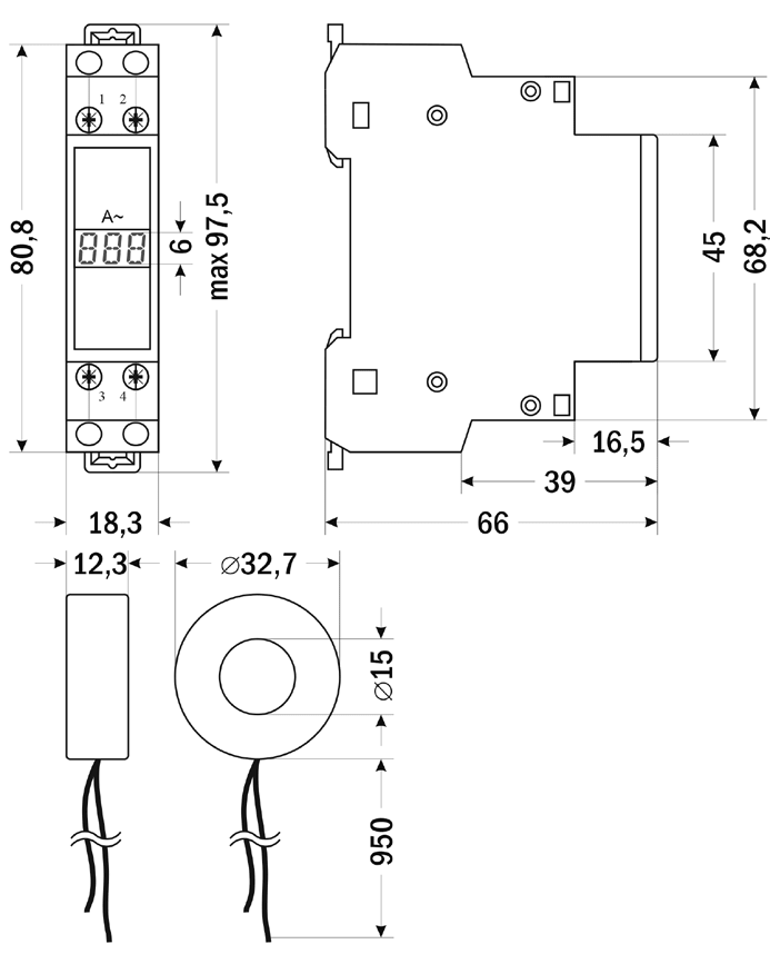 Амперметр однофазный на DIN-рейку Omix D1-A1-1 предназначен для измерения и индикации силы тока в однофазных сетях переменного тока